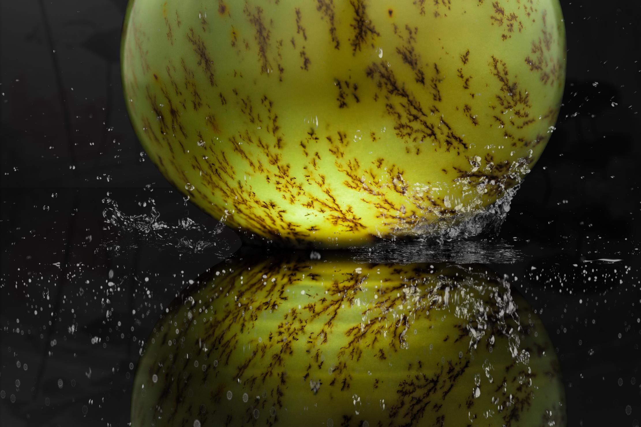 两件作品出自同一块有天然水草纹的稀有析木玉原石,其中一块有色泽鲜明的浓艳金黄浆皮,映衬出层次感。