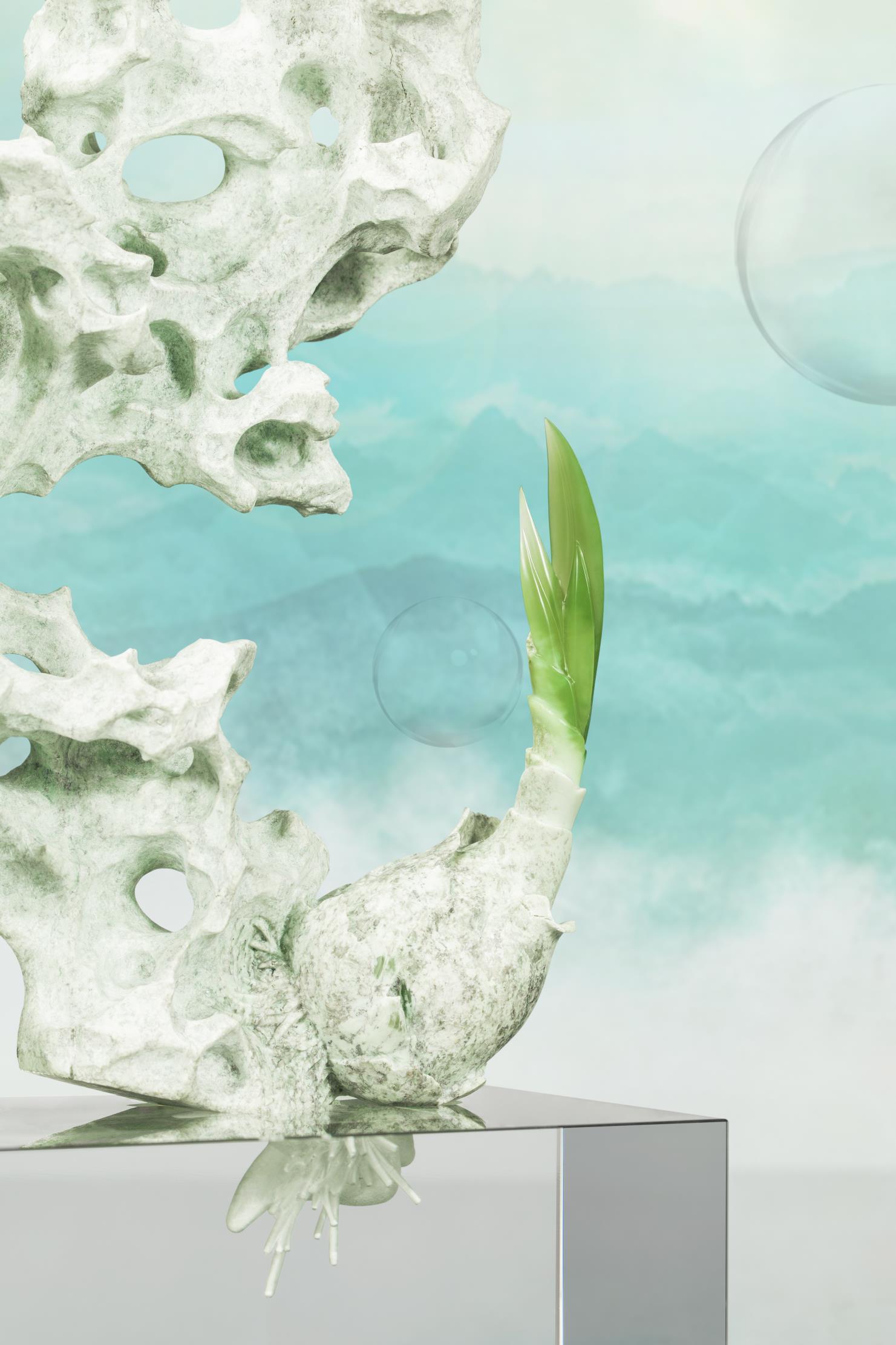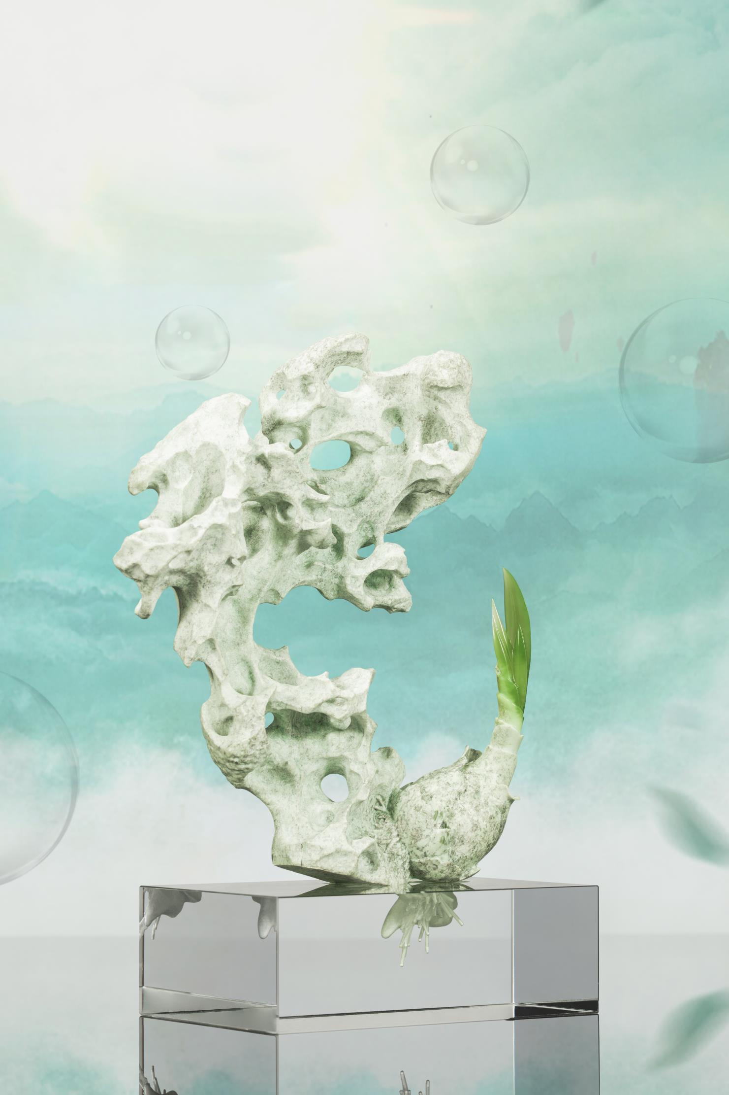 中国玉石巧雕大师唐勇做了个梦,梦见自己变成一棵水仙生长于石畔。