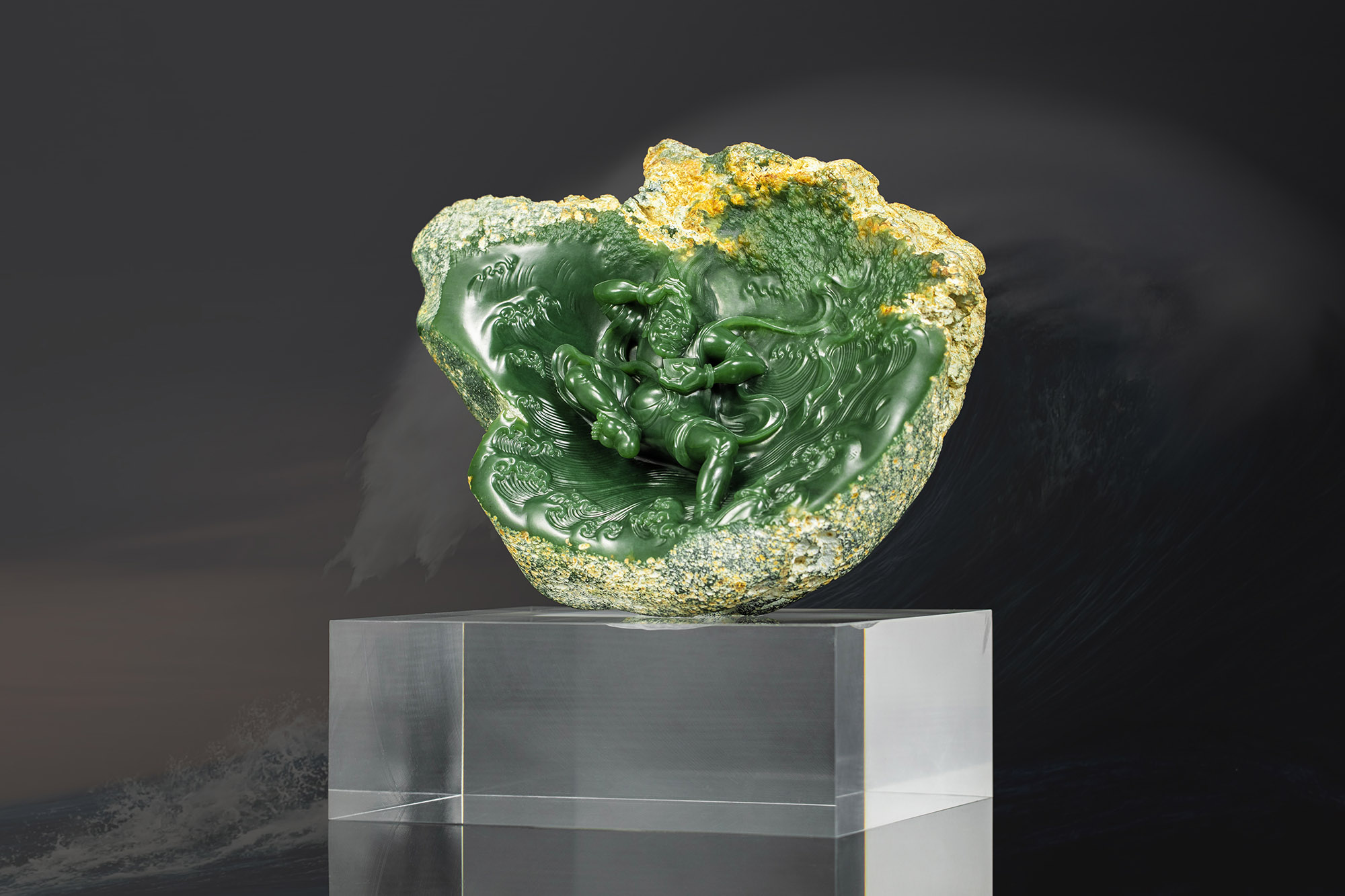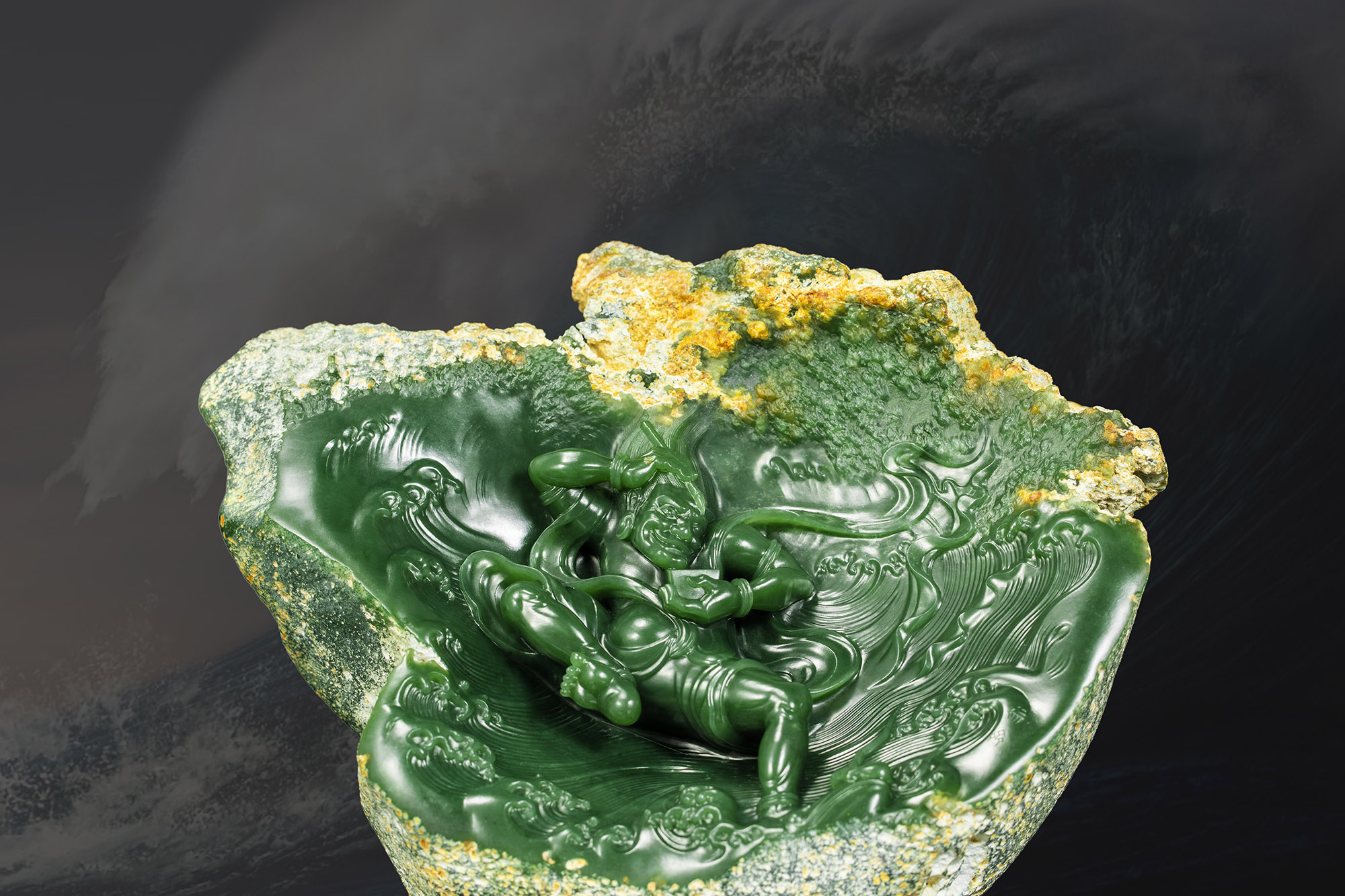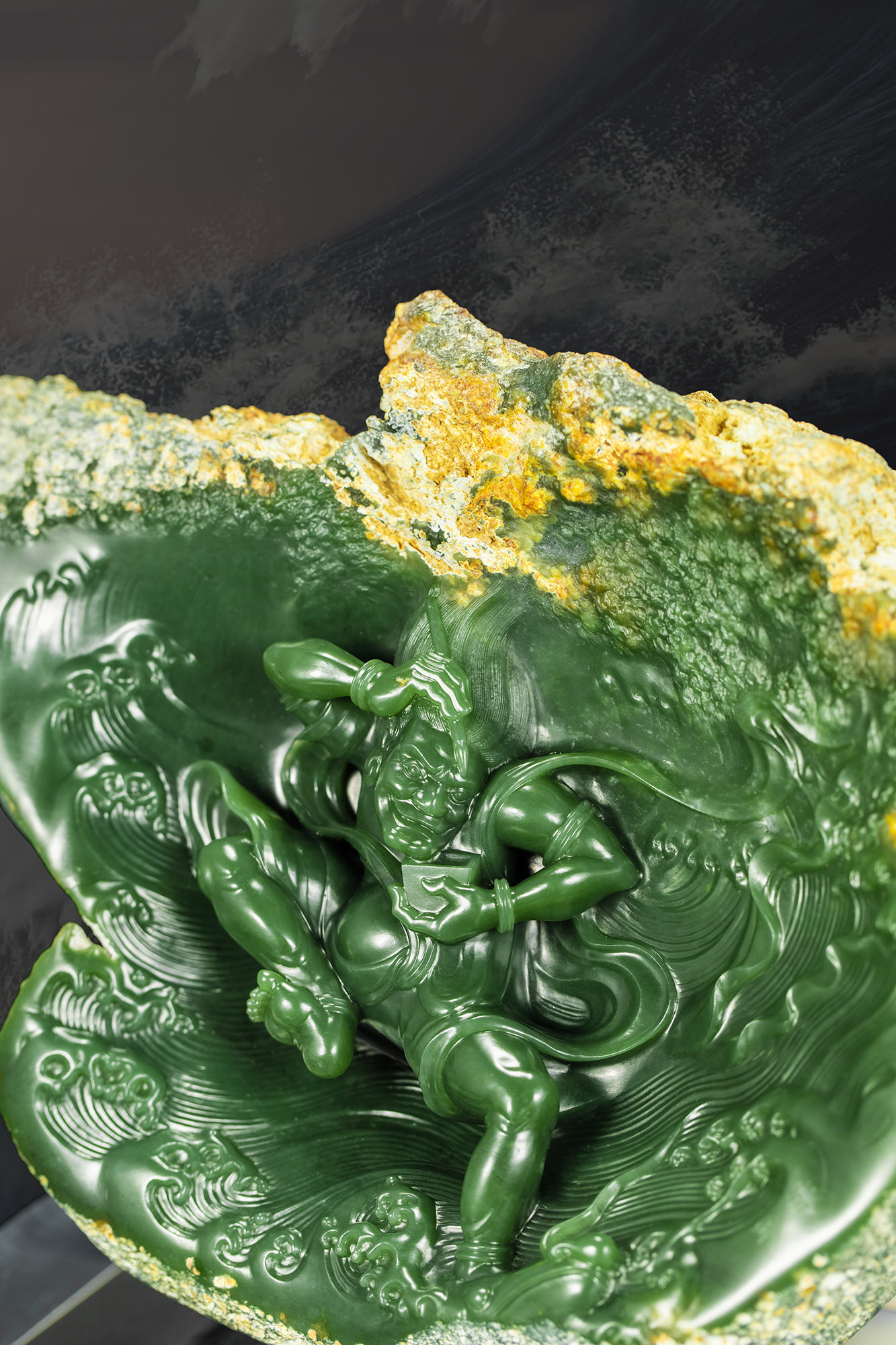中国玉石雕刻大师张庆东说,这蕴涵凝重美的玉色,是“中国绿”、“国防绿”,代表中华民族尊重自然、热爱自然的生态文明思想和绿色发展理念;是爱党爱国、尚武笃学、崇尚荣誉、献身国防男儿的赤诚本色,且永不褪色!