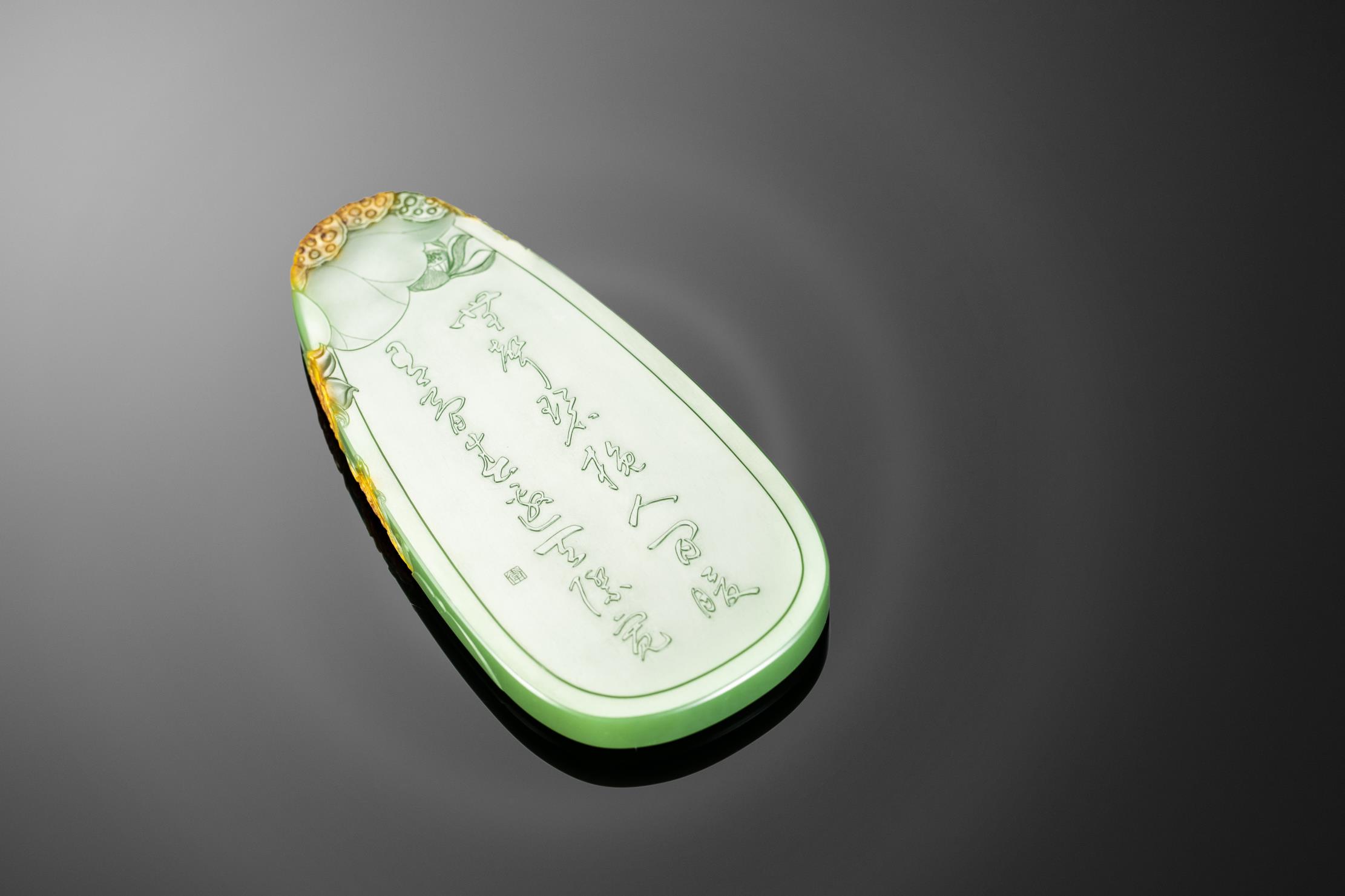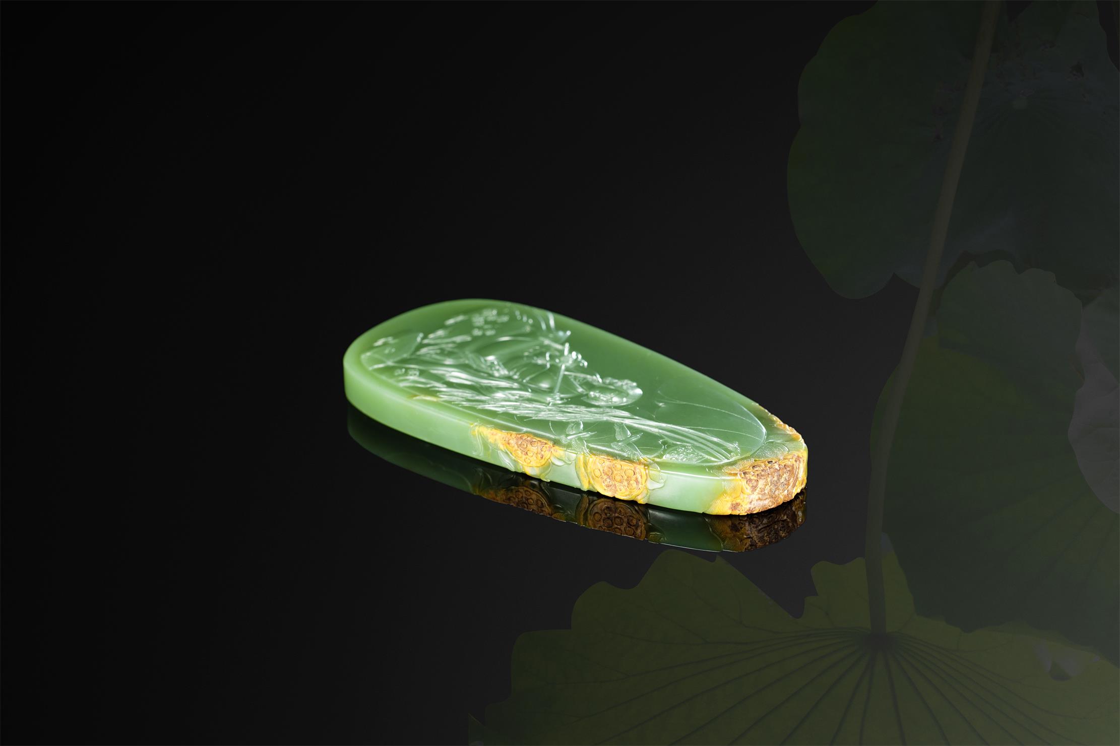 于是,背书“无声碧挽人间暖,有梦春邀天际宽”的细滑柔润析木玉,更添方寸间的宁静祥和、古意哲思,惹人深念不忘。