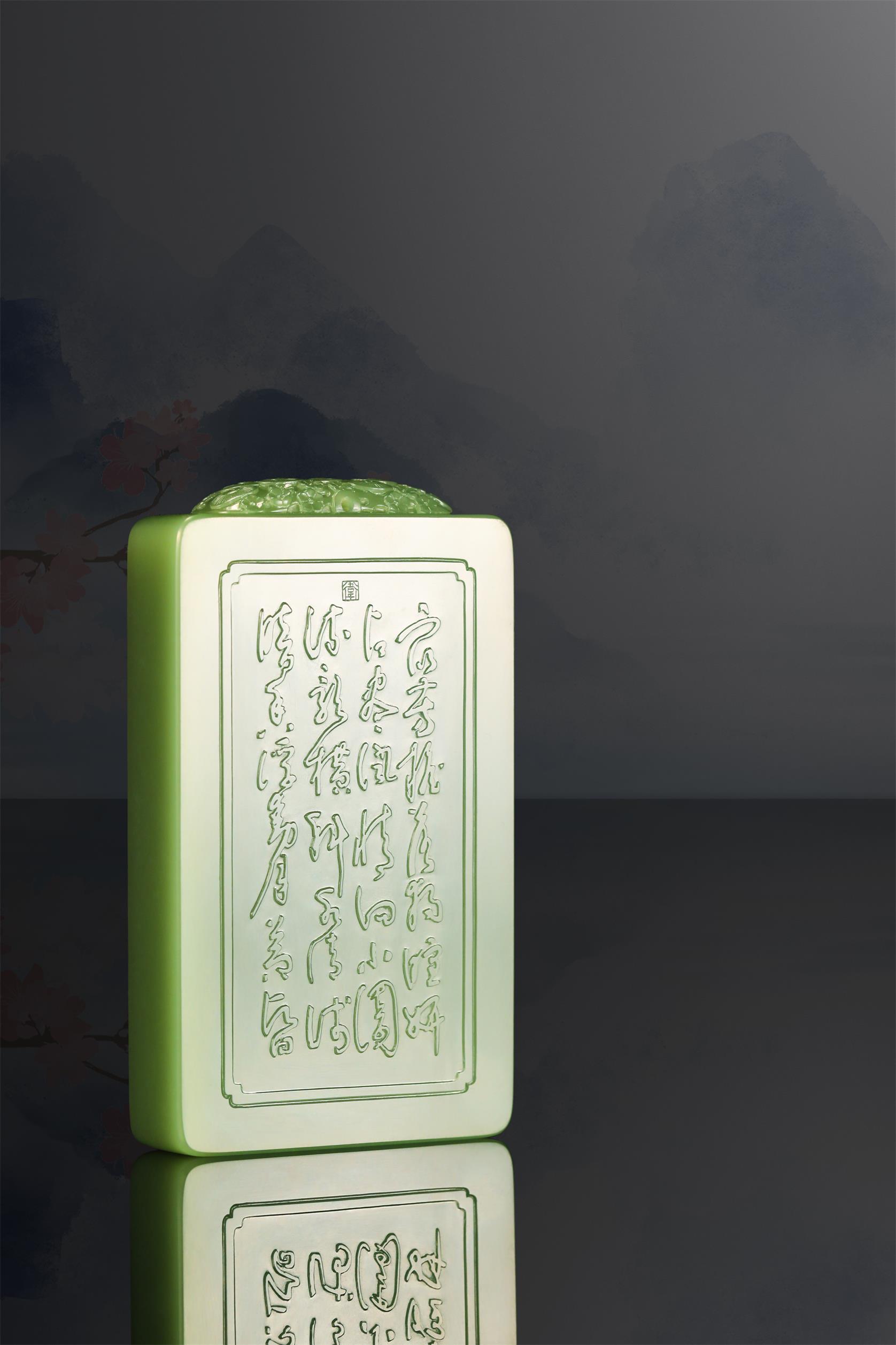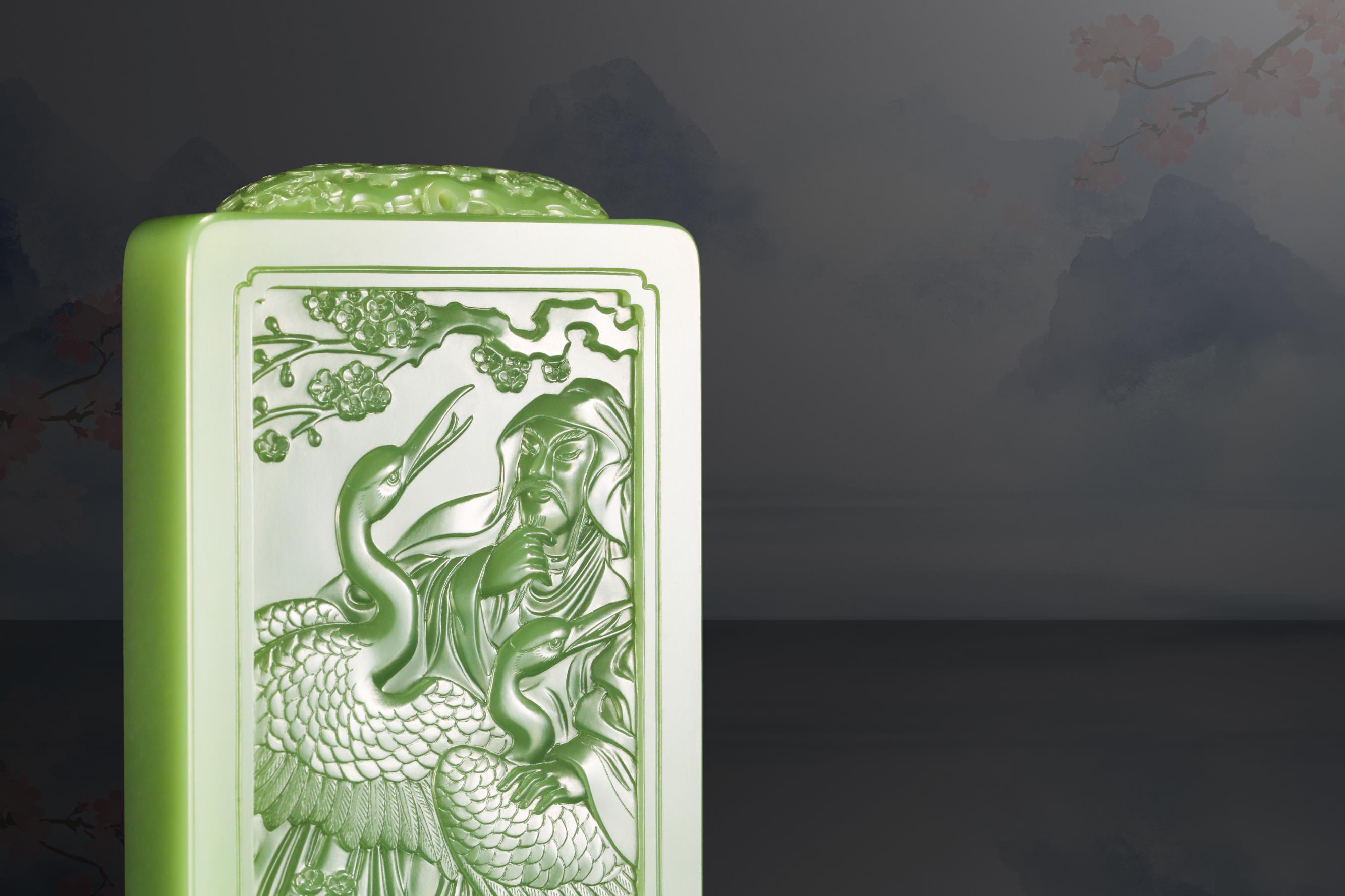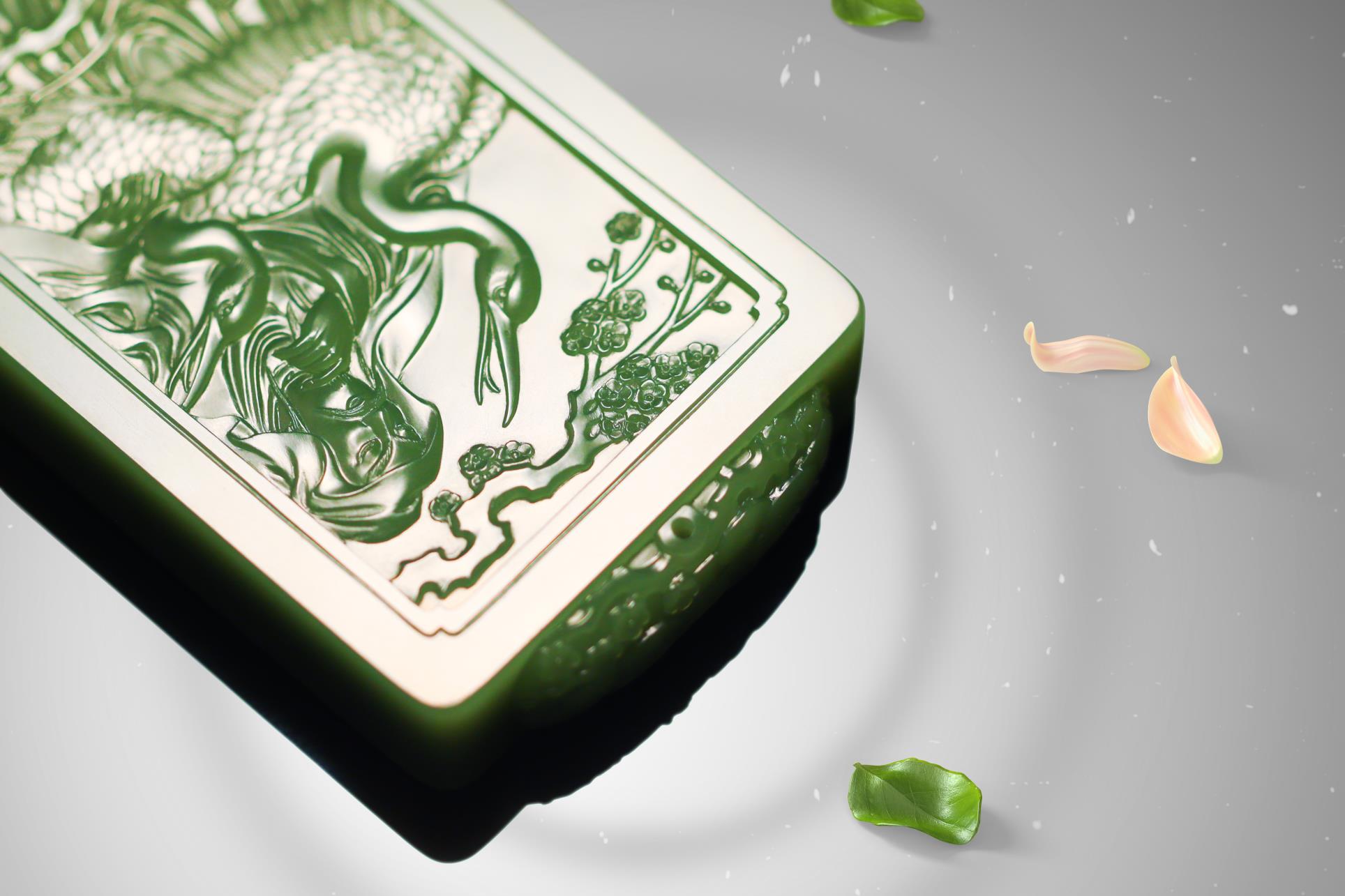 中国玉石雕刻大师、国家级非物质文化遗产(海派玉雕)代表性传承人翟倚卫,继承了文人对于诗境、格调、品位的追求,以刀为笔,书写自然之道、精神之趣。他雕刻的《暗香浮动》玉牌,彰显出林逋的仙风道骨,梅花的清妍恬淡,双鹤的亲和灵俊。