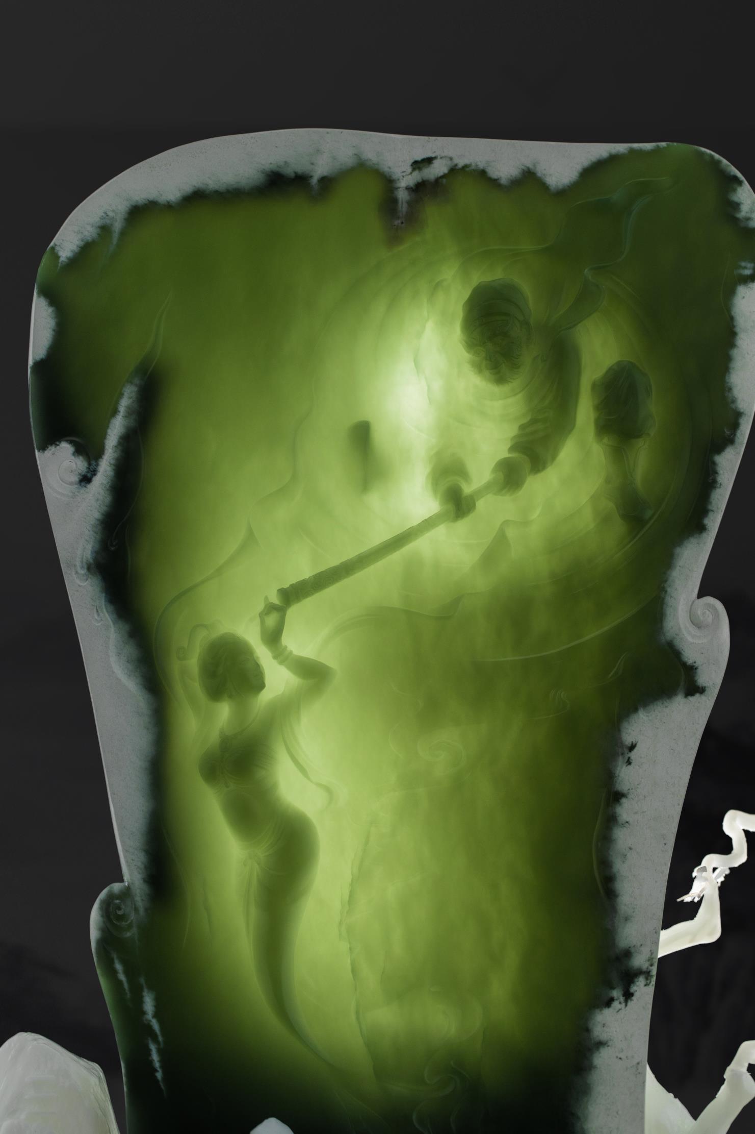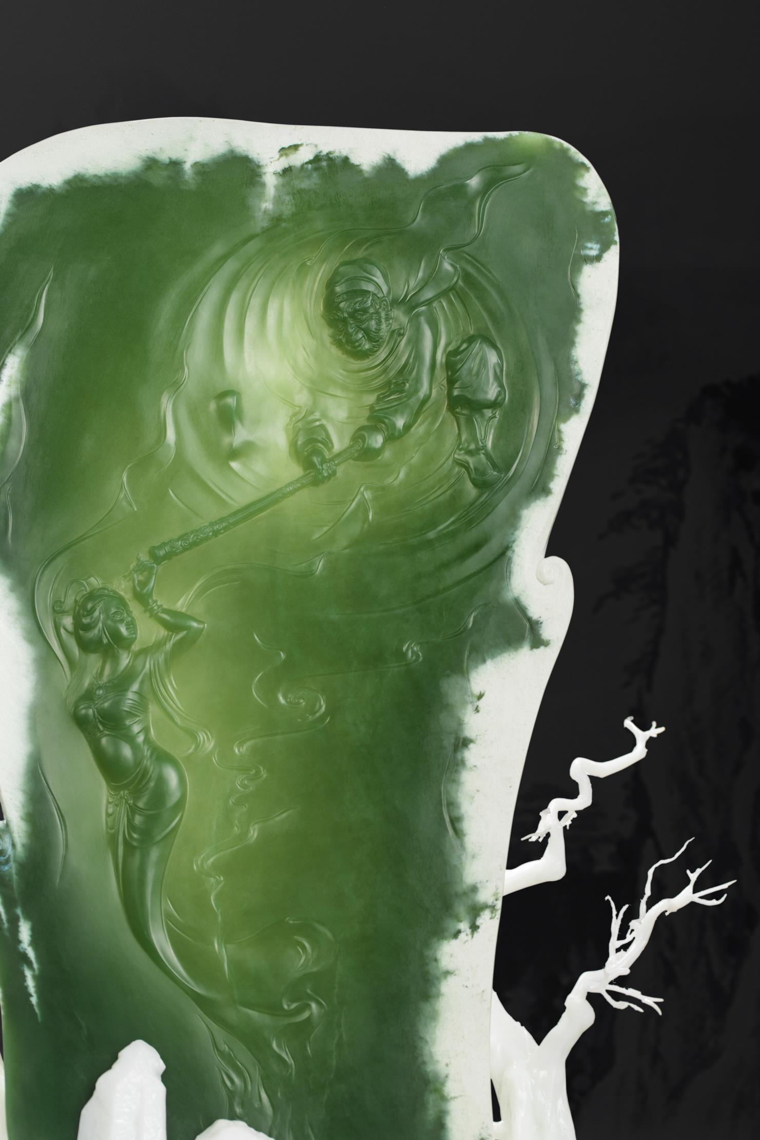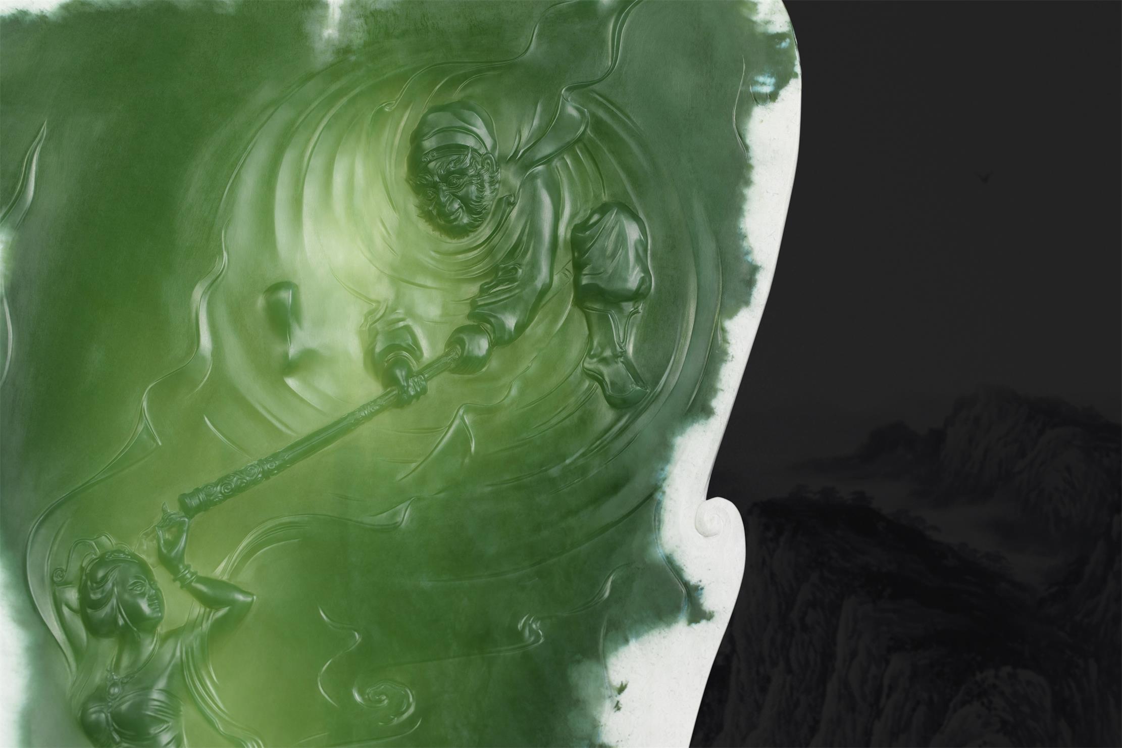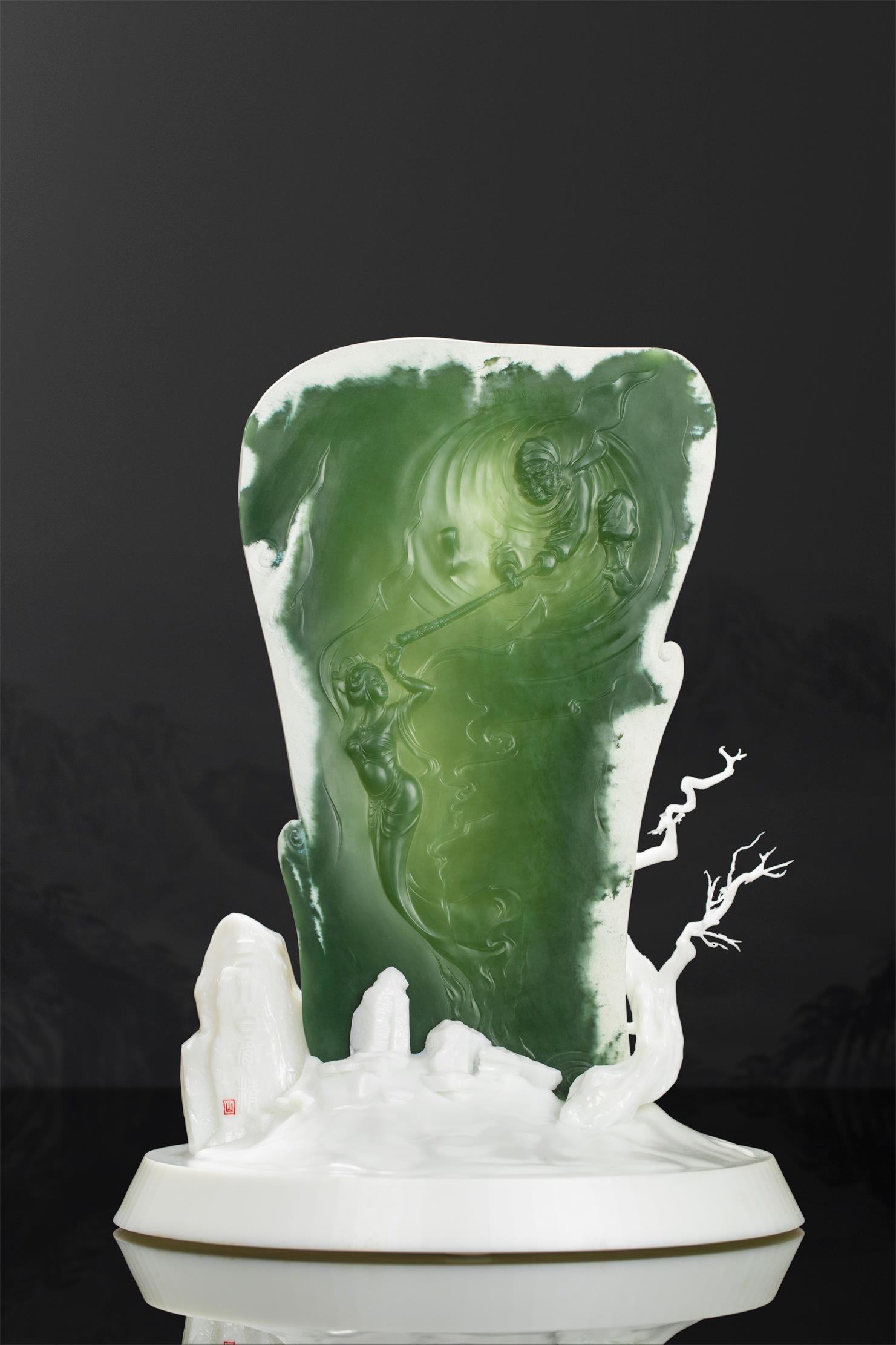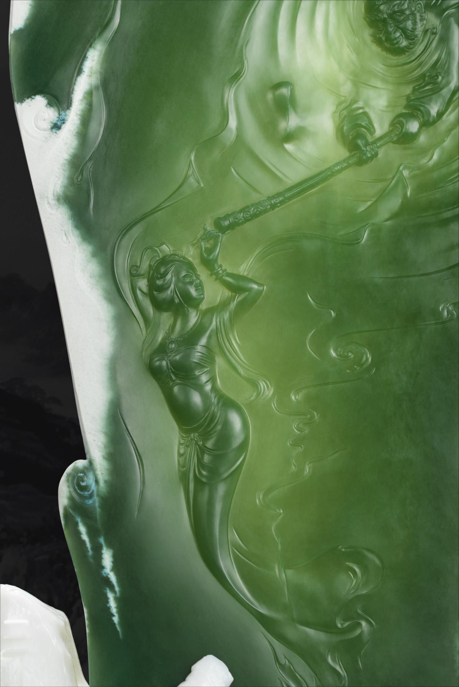 玉作上没有过多的情节铺陈,却使人在行云流水的雕刻细节和如影片特效的动作定格中,回温起那些年我们看《西游记》之《三打白骨精》的每一个场景。