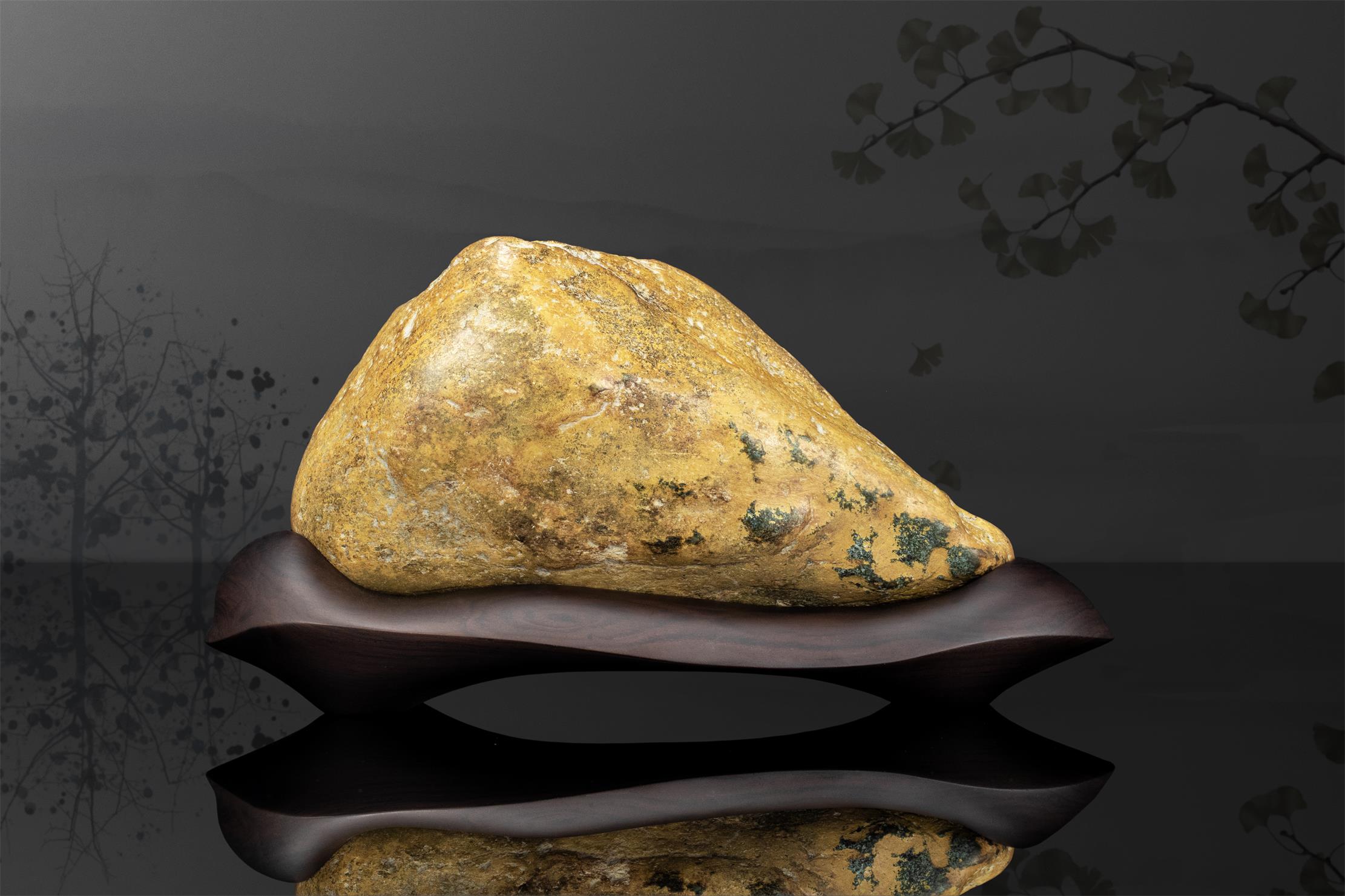 于是,他利用此块玉料的特点,匠心巧思,精妙构图,大胆取舍,将玉料顶端的一部分金黄皮雕成葳蕤的树冠,渲染出枝叶连绵、层林染秋的空灵之景。