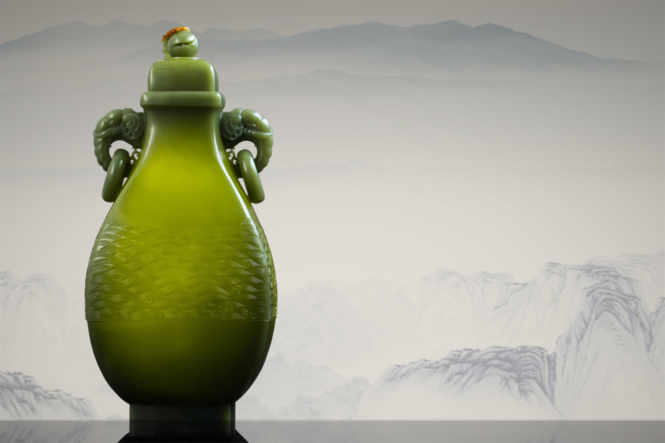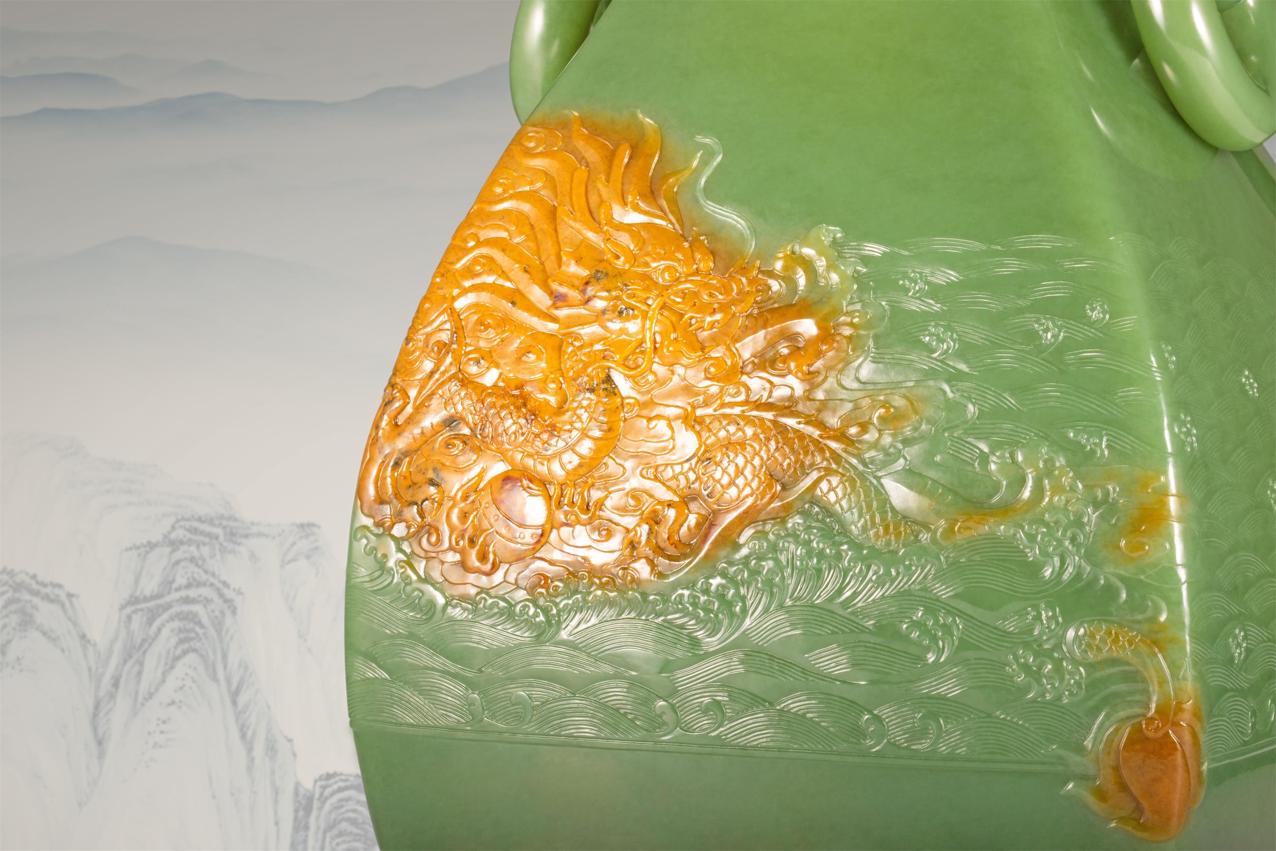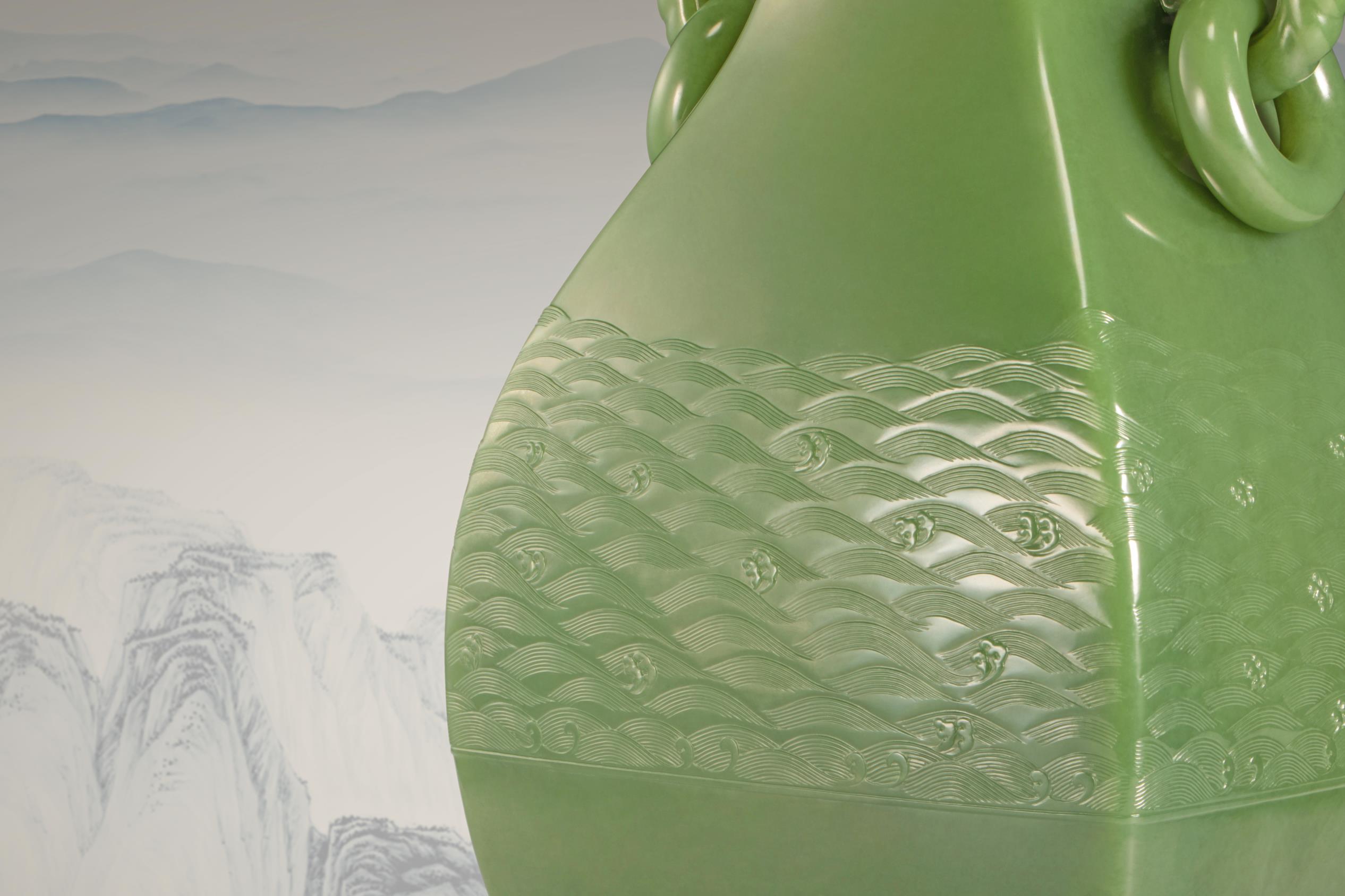 玉瓶上的四面之海象征着太平洋,而玉“瓶”即“平”,传达出四海升平、八方宁靖之意。