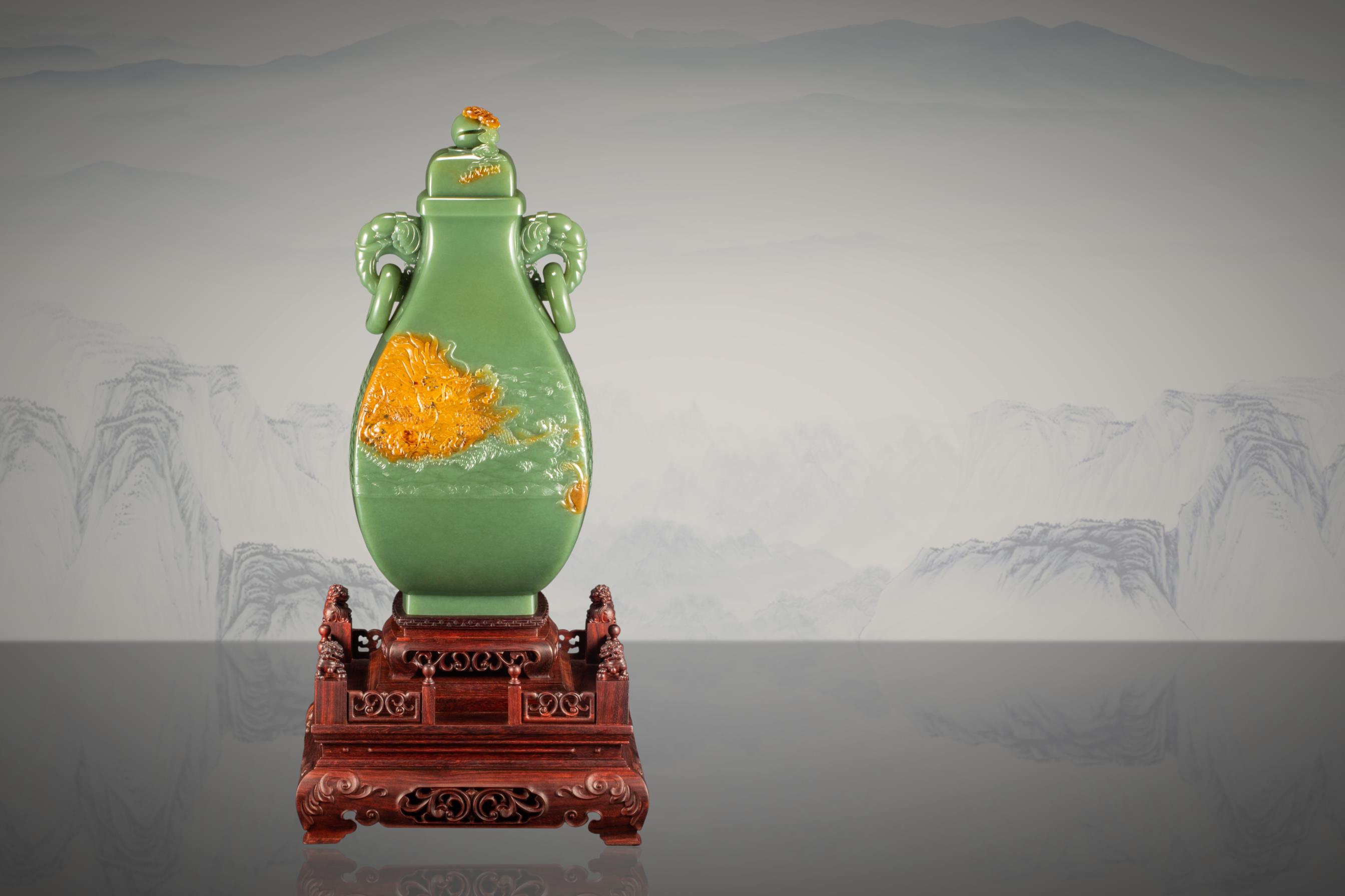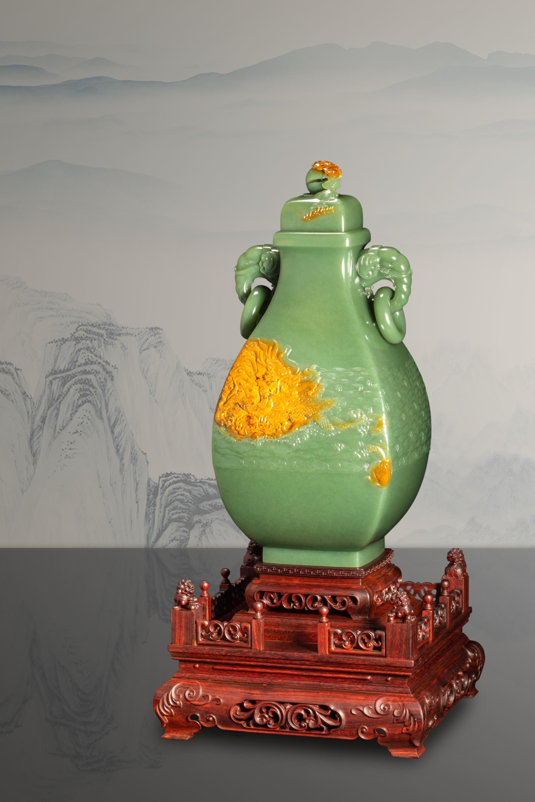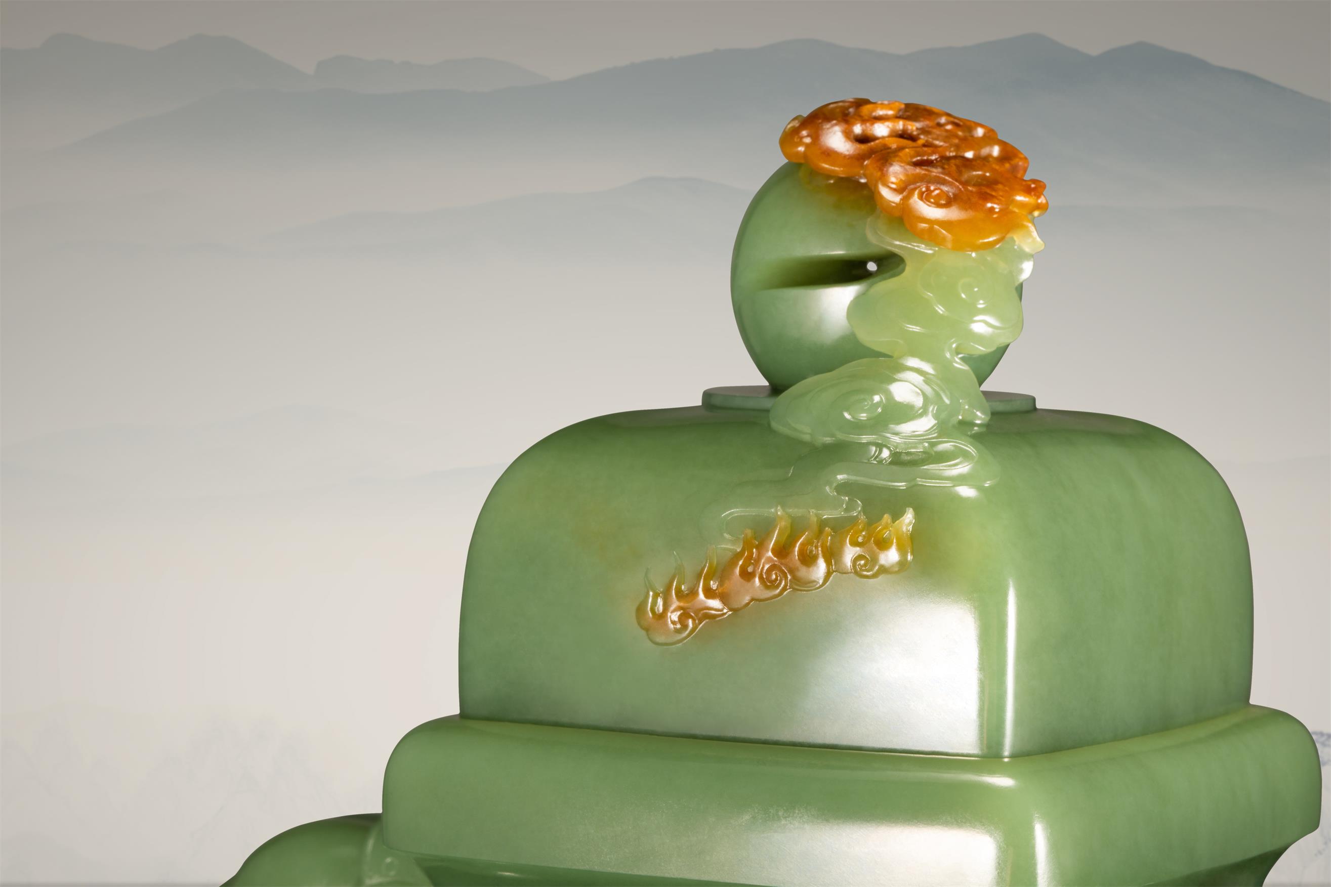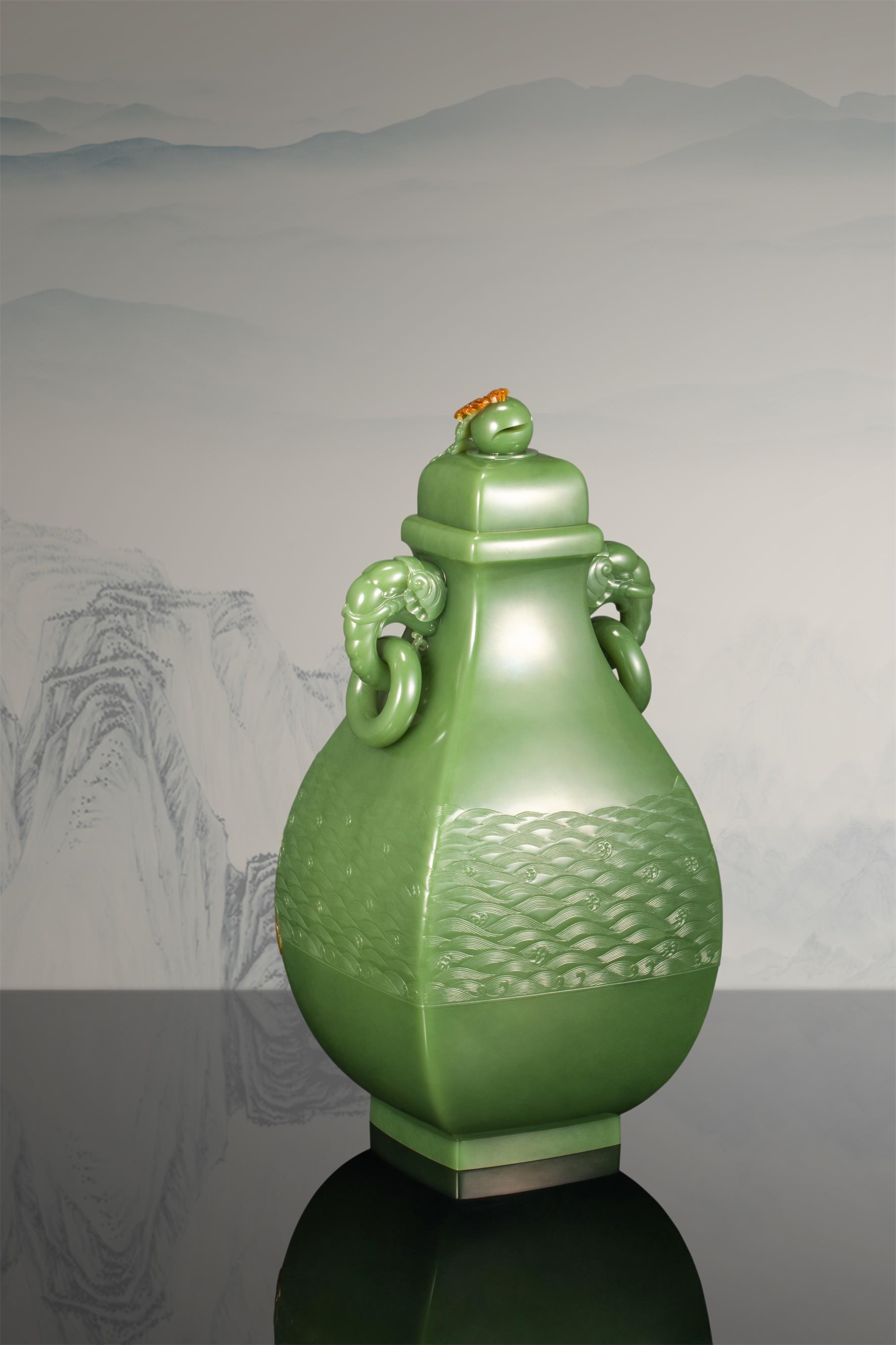 玉瓶上的四面之海象征着太平洋,而玉“瓶”即“平”,传达出四海升平、八方宁靖之意。